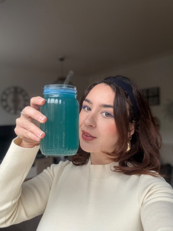 Sa poudre bleue se transforme naturellement en une couleur bleu / pourpre étonnante au contact de l’eau.